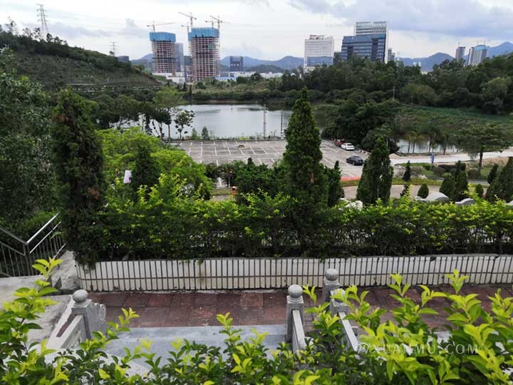 龙山永久墓园座落在龙岗区龙岗镇南约村。墓园座北向南,龙山湖畔,依山傍水,四周青山环抱,远眺梧桐山群峰重叠,园中青山绿水交相辉映,一派温馨祥和景象,不论城市如何发展,这里都绝不受干扰,是一个天然宝地。
