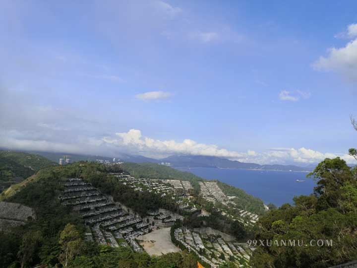 大鹏湾华侨墓园位于沙头角东部大小梅沙侧的特区管理线内,面对浩瀚的大鹏湾,背靠梅沙尖山,左右有大鹏湾半岛及吐露港黄竹角等拱卫,风水极佳,是安放先人理想之地 。